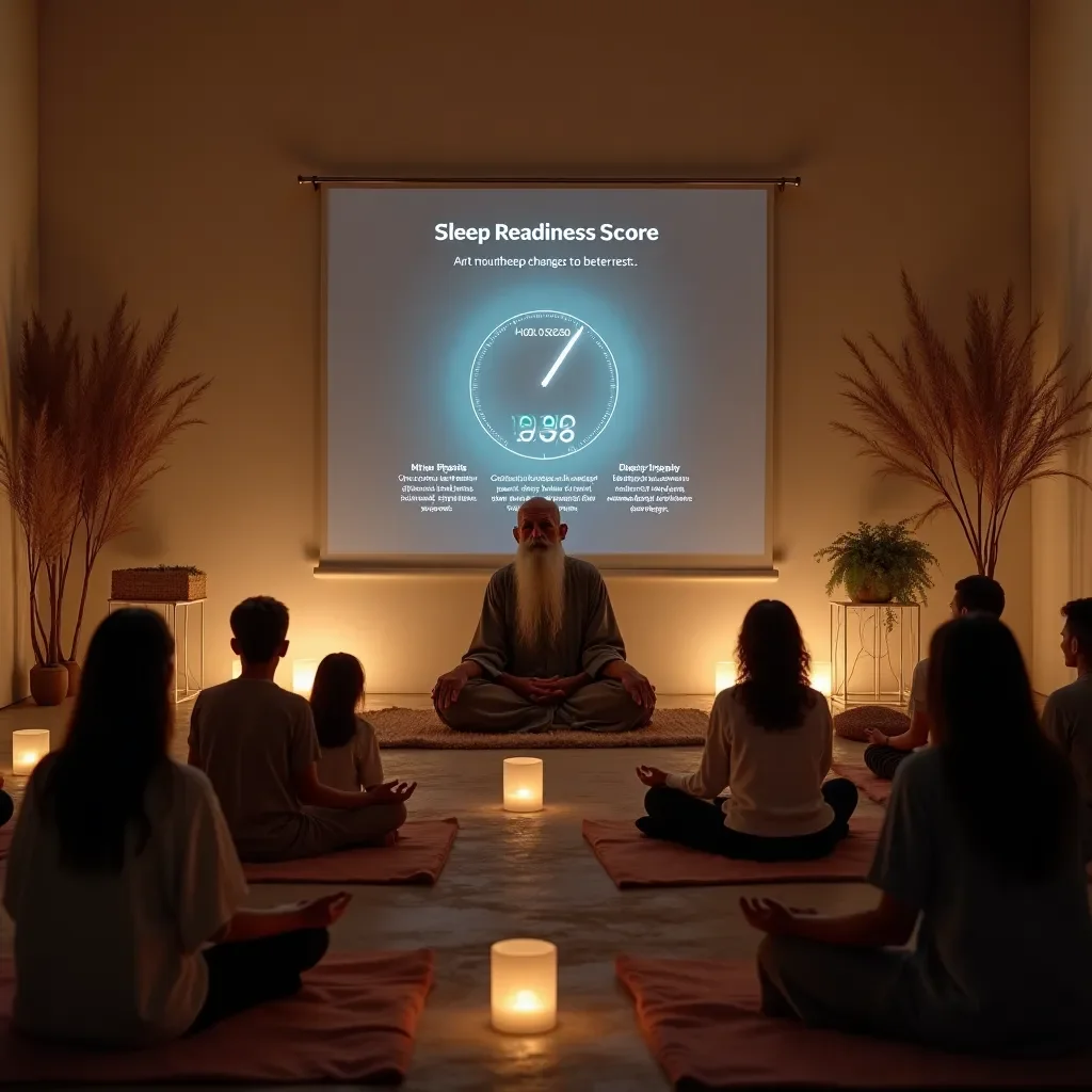 El 'Sleep Readiness Score' es una medida única que evaluamos antes de cada sesión. Este puntaje se basa en factores como tu nivel de estrés, fatiga y patrones de sueño. Utilizamos esta información para personalizar tu experiencia de yoga, asegurando que sea efectiva para promover un descanso profundo.